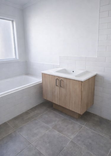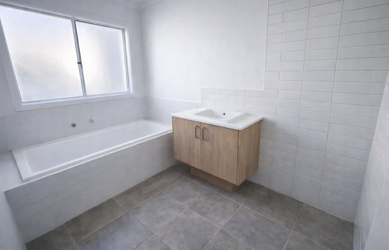 This is the point where your wet areas are tiled and grouted, and the builder is often ready to issue a progress claim — even though the bathrooms might not have taps, screens, mirrors, or basins installed yet.